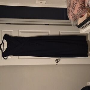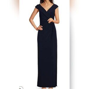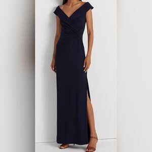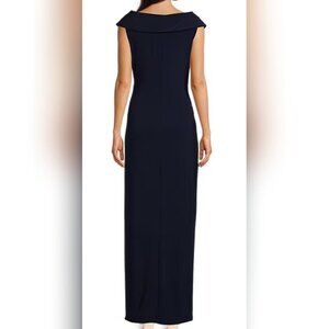 Lauren Ralph Lauren Navy Blue Portrait Collar Cap Sleeve Crepe Sheath Gown