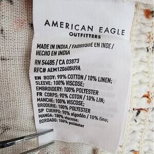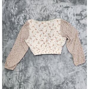 American Eagle Top Womens M Cream Linen Blend Floral Crop Balloon Sleeve Peasant