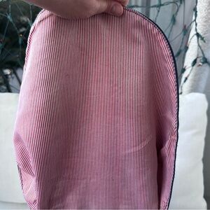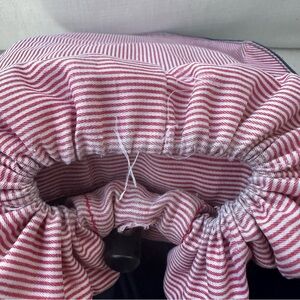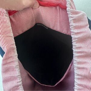 Very good pre‑owned. No rips or holes; a few white marks on the exterior and there is some wear on the striped fabric at the top near the drawstring. Interior is clean. See photos for exact look.