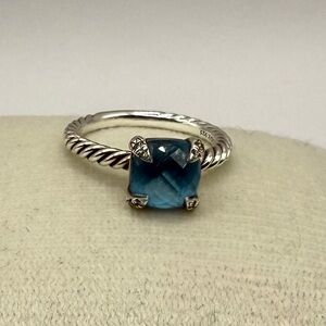 Blue Topaz with diamonds. Size 6. Purchased less than a year ago.