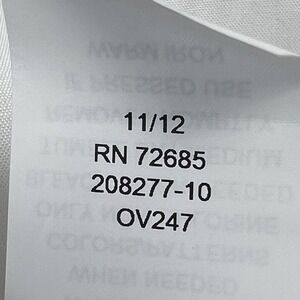 Identifiers: RN 72685, style/production code 208277-10, code OV247, date 11/12 on interior tag