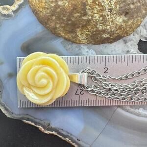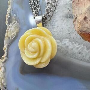Carolyn Pollack Sterling Carved Yellow Jasper Rose Pendant With Chain Necklace