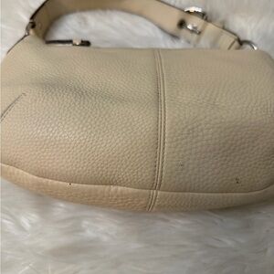 Chic and versatile Coach hobo bag. Soft cream leather with adjustable strap. Ideal for everyday use.