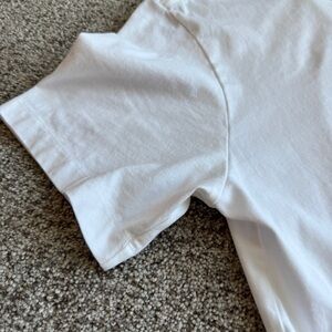 White Nike t-shirt featuring a bold red and blue graphic design. Eye-catching style. Very clean.