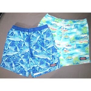 Lot of 2~ Vineyard Vines Mesh Lined Draw String Floral Swim Trunks Men's Medium