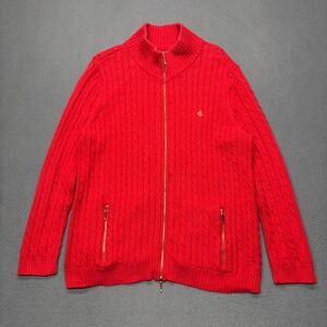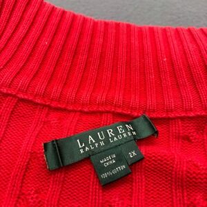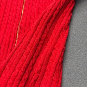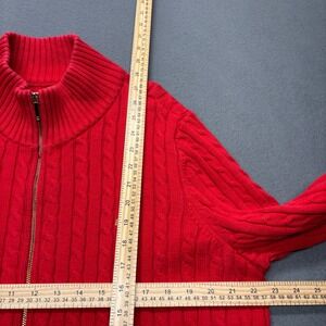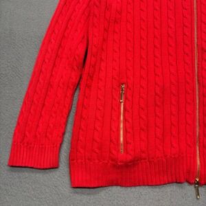 Lauren Ralph Lauren Women's Cable Knit Full Zip Mock Neck Sweater 2X Red Holiday