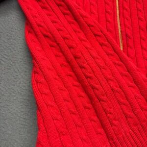 Keywords: Lauren Ralph Lauren, cable knit, zip up, mock neck, cotton sweater, red sweater, women's knitwear, plus size sweater, designer sweater, preppy, classic, fall fashion, winter wear
