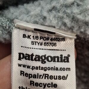 Details: Soft knit exterior with cozy fleece interior, 1/4 zip front closure, zippered left chest pocket, elastic-bound cuffs and hem, Patagonia logo patch at left chest, designed for casual wear and outdoor layering. (l)
