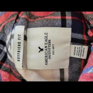 American Eagle Outfitters medium red & cream plaid button down shirt. Boyfriend
