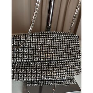 Sondra Roberts "Scarlet Grace" black evening clutch or shoulder bag completely covered in clear rhinestones. All stones intact. Extra stones included, just in case. Perfect for weddings, formal events, proms.