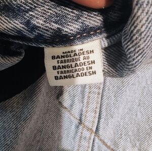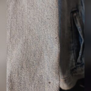 Stylish denim jacket featuring unique peace sign embroidery. Perfect for casual outings.
