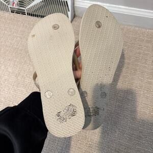 Havianas Womens Rubber Flip Flop Sandals Cream Sparkle Gold Size 41-42 Summer