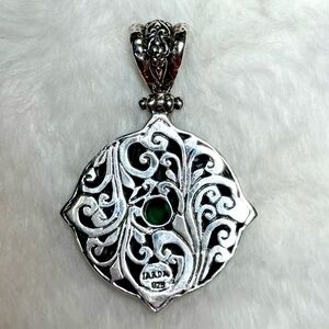 From Sarda’s Artisan Collection of Bali, here is a beautifully crafted pendant with classic Balinese beads and ornate scrollwork in sterling silver with gorgeous semi- precious stones.