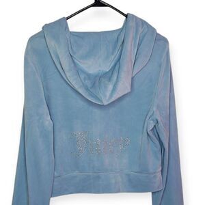 JUICY COUTURE OG Bling Velour Zip Up Hoodie Frosted Light Blue Size Large NWT