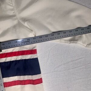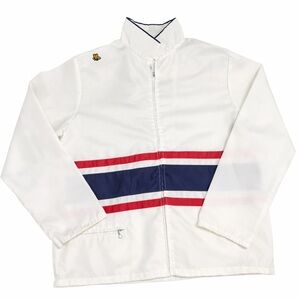 Vintage 70s White Nylon Windbreaker Red Blue Racing Stripes Embroidered Bee Sz M