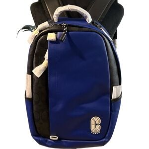 BRAND NEW W/TAGS COACH EDGE BACKPACK IN COLORBLOCK BLUE AND BLACK CANVAS AND LEATHER. UNISEX. GREAT FOR TRAVELING.