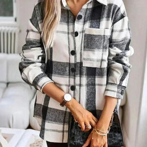 Black and White Casual Womens Plaid Print Drop Shoulder Shirt