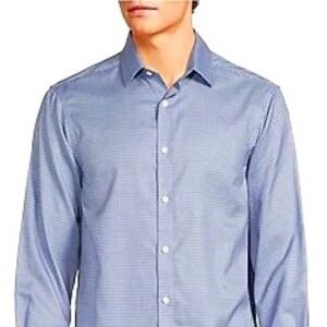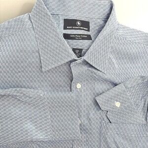 Hart Schaffner Marx Blue Check Dress Shirt 17.5-35 Pima Cotton Non-Iron