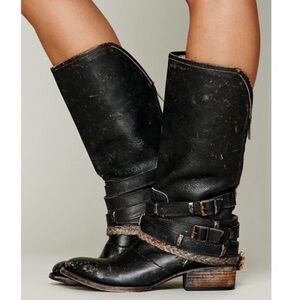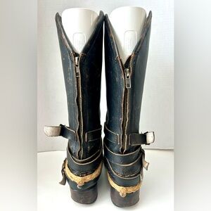 Freebird by Steven Drove Boots Black Leather Western Harness Back Zip 9