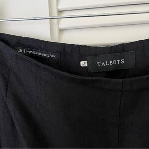 Talbots Linen High Waist Palazzo Wide Leg Black Pants Sz 16