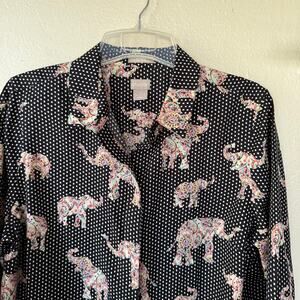 Chico's No-Iron Cotton Stain Shield Elephant-Polkadot Print Shirt size XL