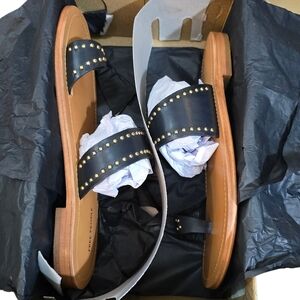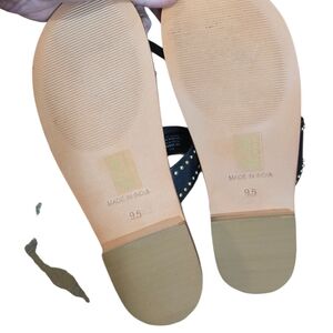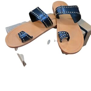 Chic black sandals with studded details and a comfortable tan sole are perfect for casual outings! 🖤👡