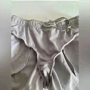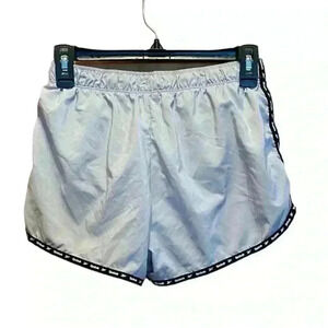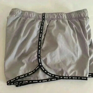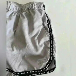Reebok athletic short. Elastic waistband with drawstring. Side hip pockets. Built in interior lining/panty. Color: Grey with black edges. Size: small. Fiber tag missing. Measurements laying flat: waist 13.25”. Inseam 2.75”. Pet free smoke free environment.