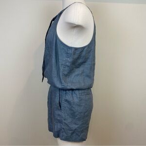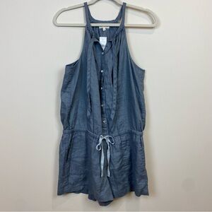 Lou & Grey Loft NWT Linen Dusty Gray Romper Sz S Tie Neck Racerback Pockets