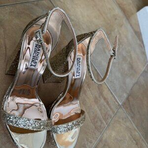Badgley Mischka Party Platform Block 5" Heel Sandals Gold Glitter