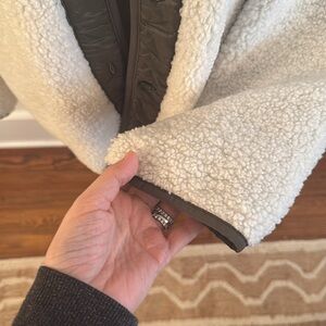 Sanctuary Arcadia Coat Button Faux Fur Fleece Sherpa Jacket Cream Green Medium
