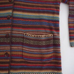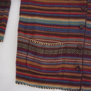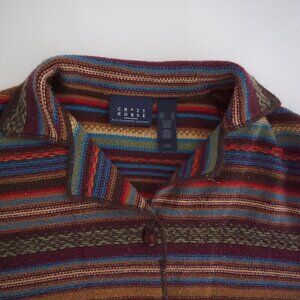 Vintage Crazy Horse Multicolor Striped Knit Button Front Cardigan Sweater XL