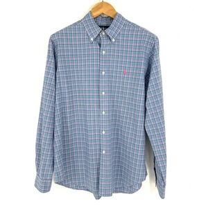 Polo Ralph Lauren Mens Button Down Shirt Size L Plaid Long Sleeve Pink Pony Logo