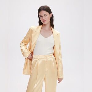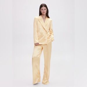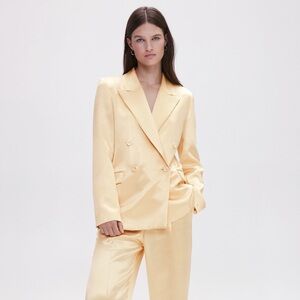 Chic Mango Selection blazer in a soft butter yellow shade. Flowy fabric Button fastening on the front section Composition: 54% Viscose, 46% Polyester Brand new without tags