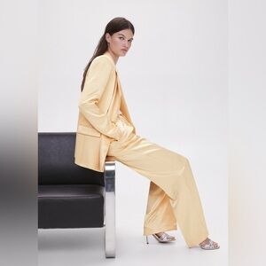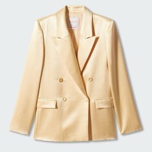 NWOT MANGO Selection Cream Satin-Finish Suit Blazer Jacket