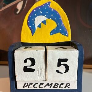 Handmade Wooden Dolphi Perpetual Desk Calendar Movable Blocks Folk Art indinesia