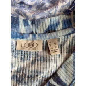 LOGO Lori Goldstein Blue Sea Cardigan Top Blue Button Women’s Pockets Large NWOT