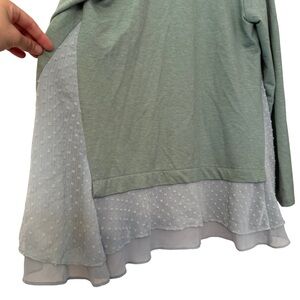 LOGO Lori GoldsteinLounge Sage Green Open Front Cardigan Chiffon hem & Side Inset oversized XXS (fits up to a medium)