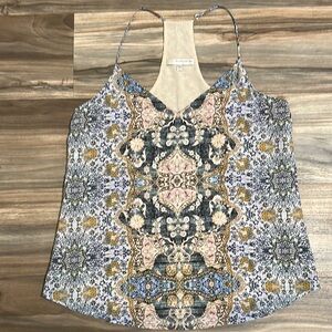 Lavender Brown Silk Camisole Racerback Tank Damask Print Lined Blouse Sz L