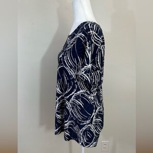 J M Collection sz lg top in navy with abstract white circles