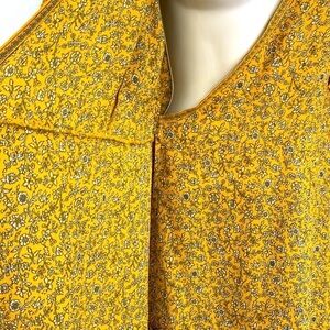 Max Studio - Yellow Ruffled White Floral Mid Short Sleeve Dress Size Medium