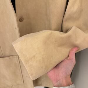 New Reformation Veda Lincoln Suede Shirt Jacket in Oat Distressed - All distressing on coat is intentional. Women's Size S / Small. Feature front button closure, collared, long sleeves, front pockets, long hip length, lined relaxed fit. 100% leather. Brand new with tags. Retail $598.