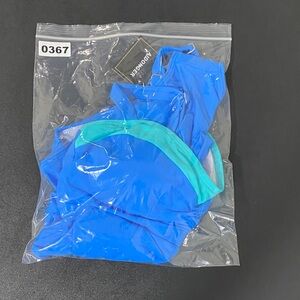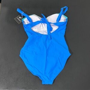 Stylish one piece with ruched design. Aqua and blue colors. Ideal for swimming fun.