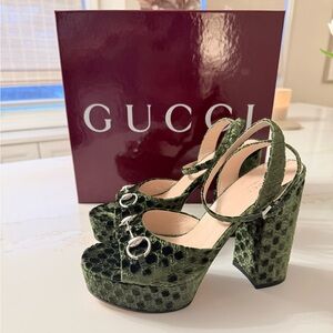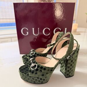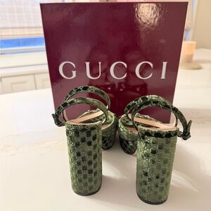 Lady Horsebit GG Logo Velvet Platform Sandal (Women) 39