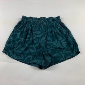 Madewell Dark Green Tropicale Floral Linen-Blend Pull-On Paperbag Shorts S