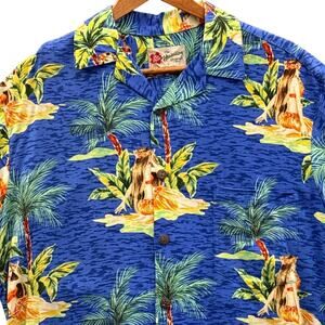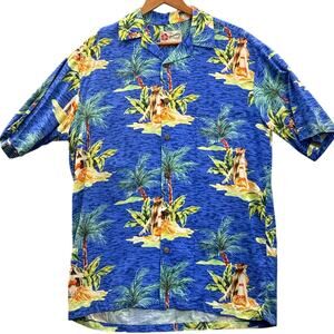 Hilo Hattie The Hawaiian Original Blue Tropical Short Sleeve Shirt Men Small