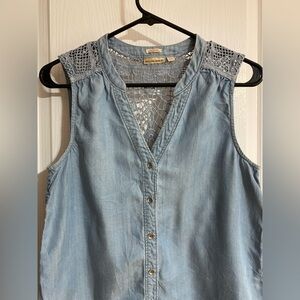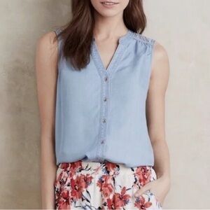 Anthropologie Holding Horses Chambray Crochet Buttoned Sleeveless Blue Top Size4