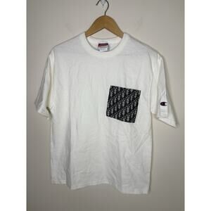 Champion Richjoe Mens Size Small White T-Shirt Upcycle Pocket Dior Oblique