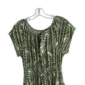Nicole Miller Green Leaf Linen Blend Midi Dress Size XS