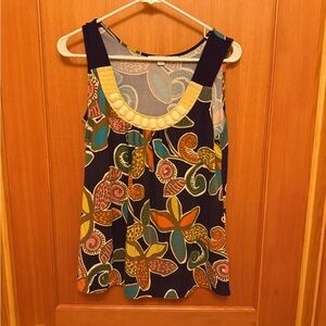 Chic Boden tank top with bold floral patterns. Features navy and yellow accents. Ideal for casual outings.