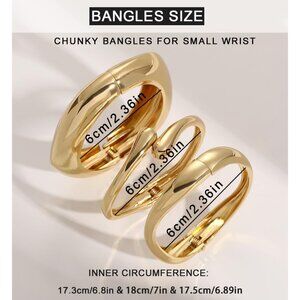 Chunky Bangles for Women: With a diameter of 6cm/2.36in and widths of 17mm/0.66in, 5mm/0.19in, and 5mm/0.19in, inner circumference: 17.5cm/6.88in, these chunky bracelets are designed to stand out. They are the ideal choice for those looking to enhance their outfit with eye-catching jewelry.
